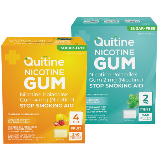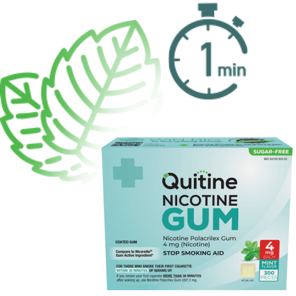 Quitine Nicotine Gum 2mg Traditional Mint delivers a clean, cool mint flavor to help you manage cravings and withdrawal symptoms during your quit. This FDA-approved, sugar-free gum contains nicotine polacrilex and was developed by a pharmacist with over 40 years of experience. The 240-piece value pack provides over 30% savings compared to smaller packs from other brands, offering cost-effective support you can count on.